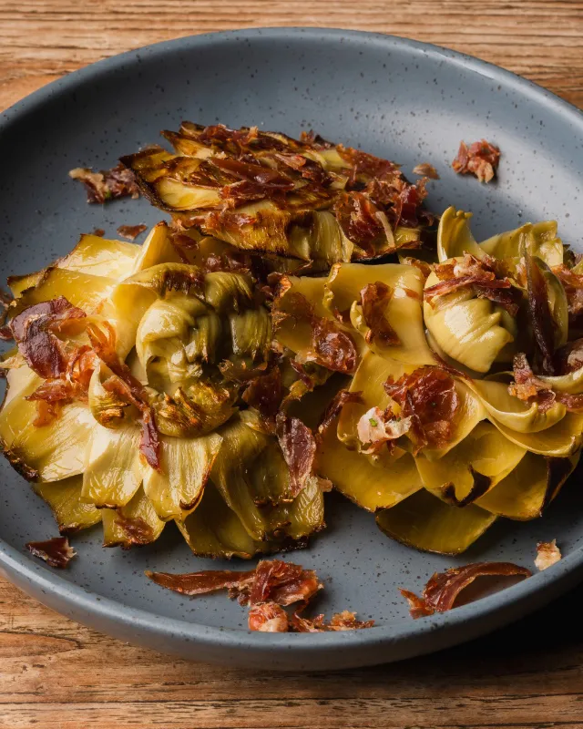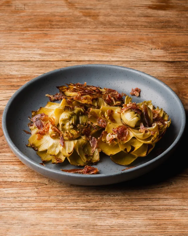 Rice with free-range chicken, Norway lobsters and artichokes